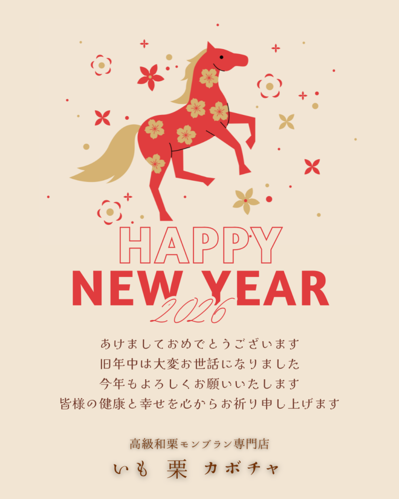 旧年中は高級和栗モンブラン専門店「いも栗カボチャ」をご愛顧いただき、誠にありがとうございました。 皆様の温かいご支援のおかげで、無事に2026年の新春を迎えることができました。