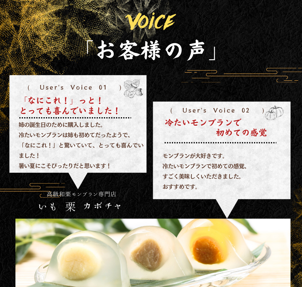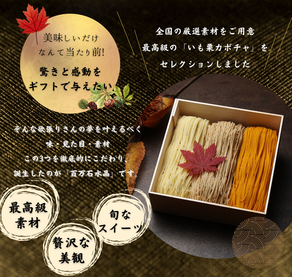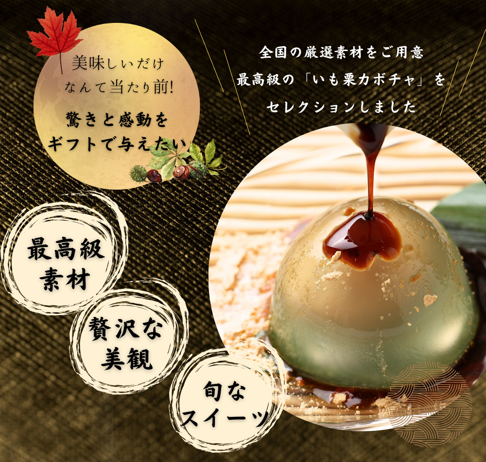 当店の看板メニューで人気の高い3種の「いも栗カボチャ」