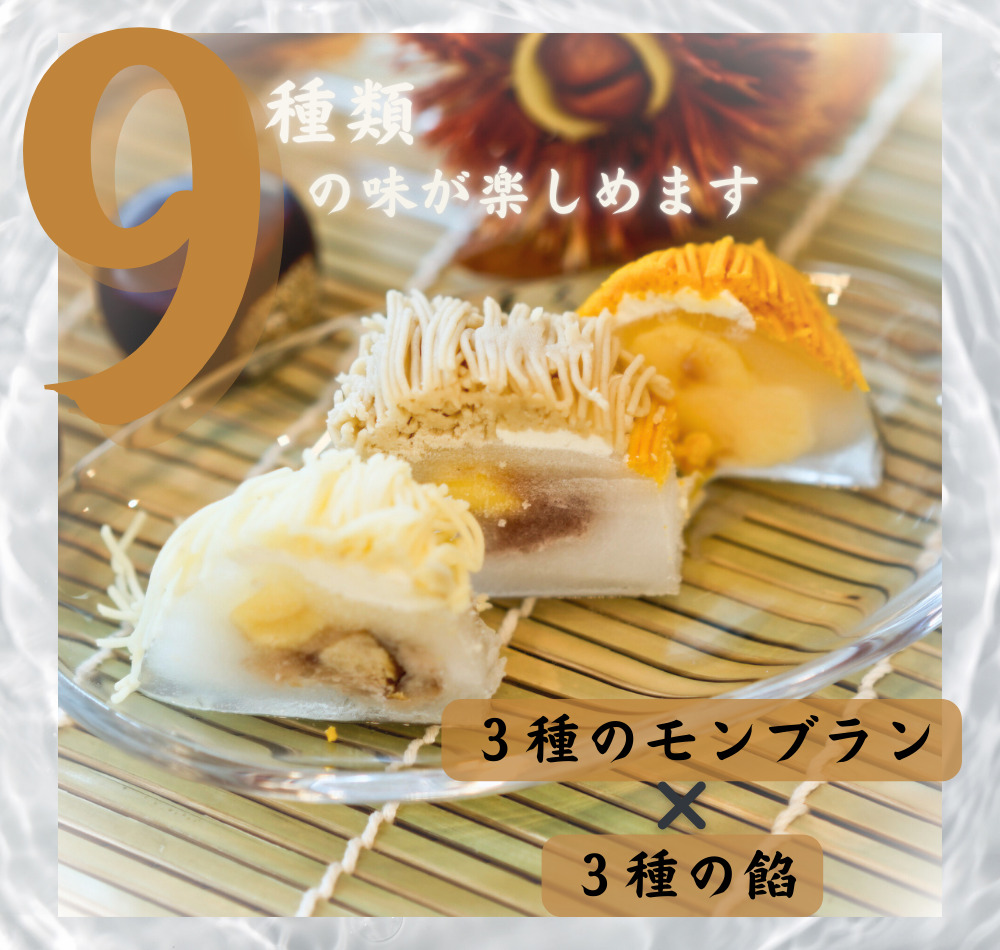 ひんやりつるんとした葛の中に和栗と3種類の餡